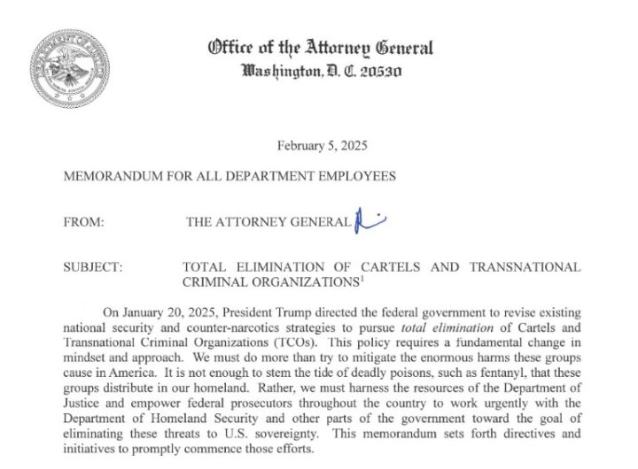 En un memorándum dirigido a sus empleados, la Oficina del Fiscal General de Estados Unidos anunció una...