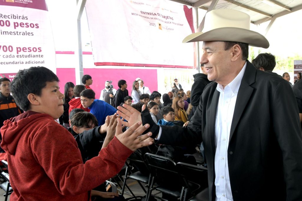 - Para beneficio de los más de 124 mil estudiantes de secundaria en Sonora, el gobernador Alfonso Durazo Montaño, hizo entrega de las tarjetas de la Beca Universal Rita Cetina en la Escuela Secundaria General No. 9 «Arq. Gustavo F. Aguilar Beltrán», que impulsa la presidenta Claudia Sheinbaum Pardo.