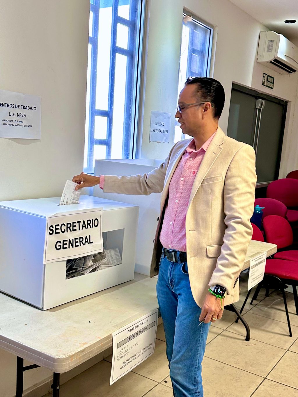 Este día se está llevando a cabo la elección a Secretario General de la Sección 13 Sonora, desde muy temprana hora los trabajadores agremiados al Sindicato Nacional de Trabajadores del Seguro Social (SNTSS) acudieron a votar a los diferentes centros de trabajo. El Enfermero Francisco Javier Bonilla Romero uno de los cuatro candidatos originario de Hermosillo acudió a ejercer su derecho al voto en un ambiente festivo y de sana convivencia.
