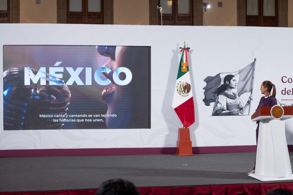 La Presidenta Claudia Sheinbaum Pardo convocó a jóvenes mexicanos y estadounidenses a participar en el concurso binacional de música México canta por la paz y contra las adicciones, —cuyas inscripciones serán del 28 de abril al 30 de mayo de 2025— y el cual tiene dos objetivos: promover la música mexicana sin contenidos que hagan apología a la violencia o a las drogas; y, como parte del Plan México, traer al país parte de la industria creativa de Estados Unidos.