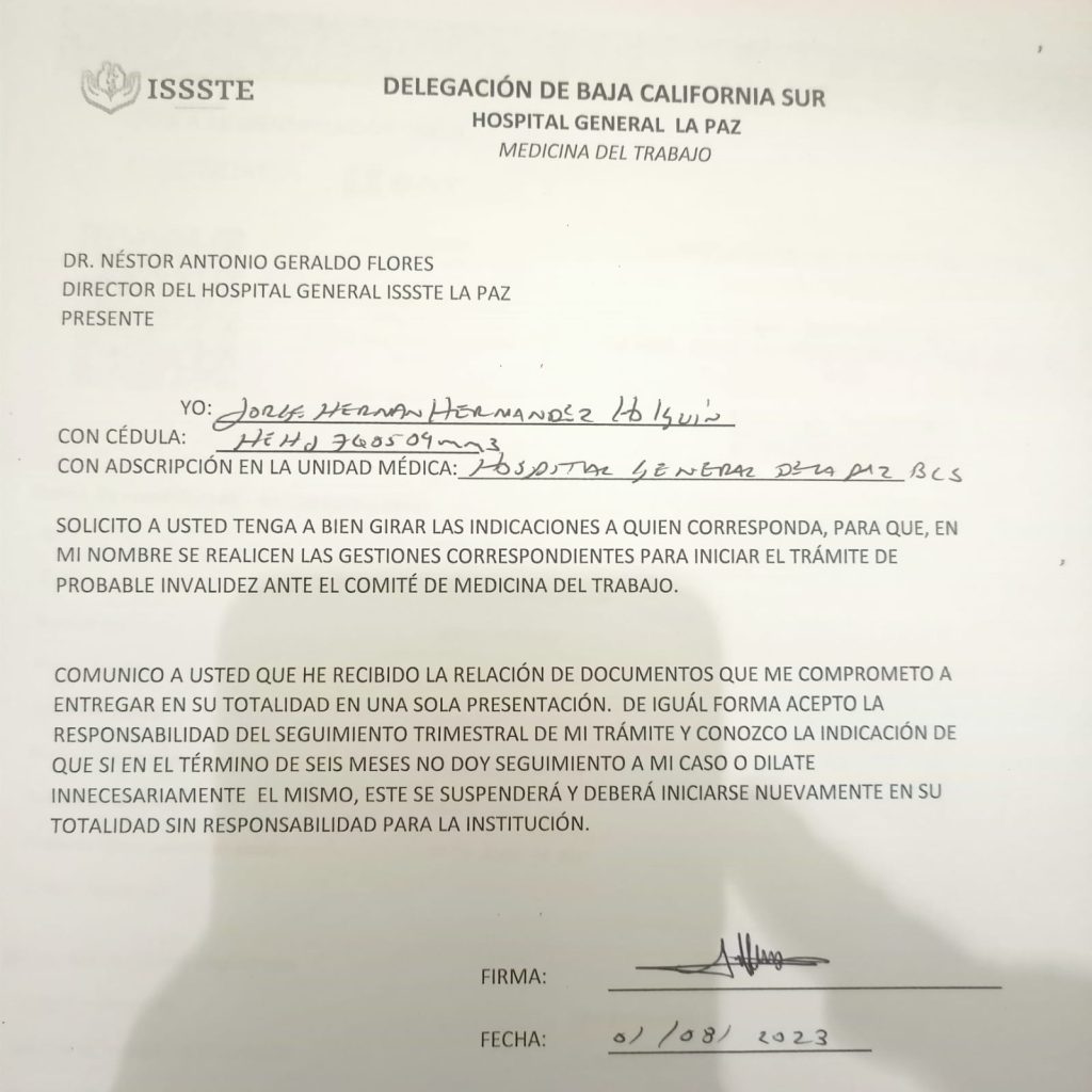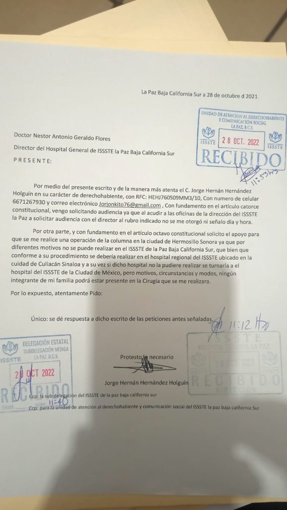 La Paz, BCS (IN/PN).- Durante más de 5 años, el sonorense originario de Hermosillo, Jorge Hernán Hernández Holguín, ha sido víctima de negligencia médica, desatención administrativa e indiferencia de parte del ISSSTE en La Paz, Baja California Sur y del centralismo burocrático en la Ciudad de México.