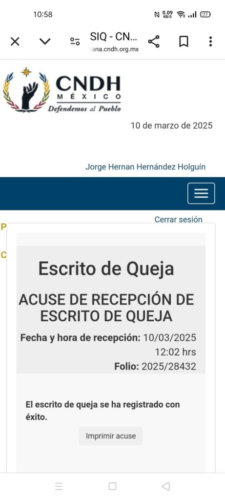Después de un tiempo, «determinó el especialista traumatólogo, ortopedista y el neurocirujano internista operarme, transcurriendo todo en el lapso de 2 años y al contestar que no tenían los medios necesarios para llevar a cabo la operación en el hospital de especialidades y 6 meses más sin conseguir el traslado, me vi en la necesidad de interponer una queja ante la Comisión Nacional de los Derechos Humanos».
