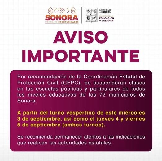 Hermosillo, Sonora; 3 de septiembre de 2025.- A partir del turno vespertino de este miércoles 3 de...