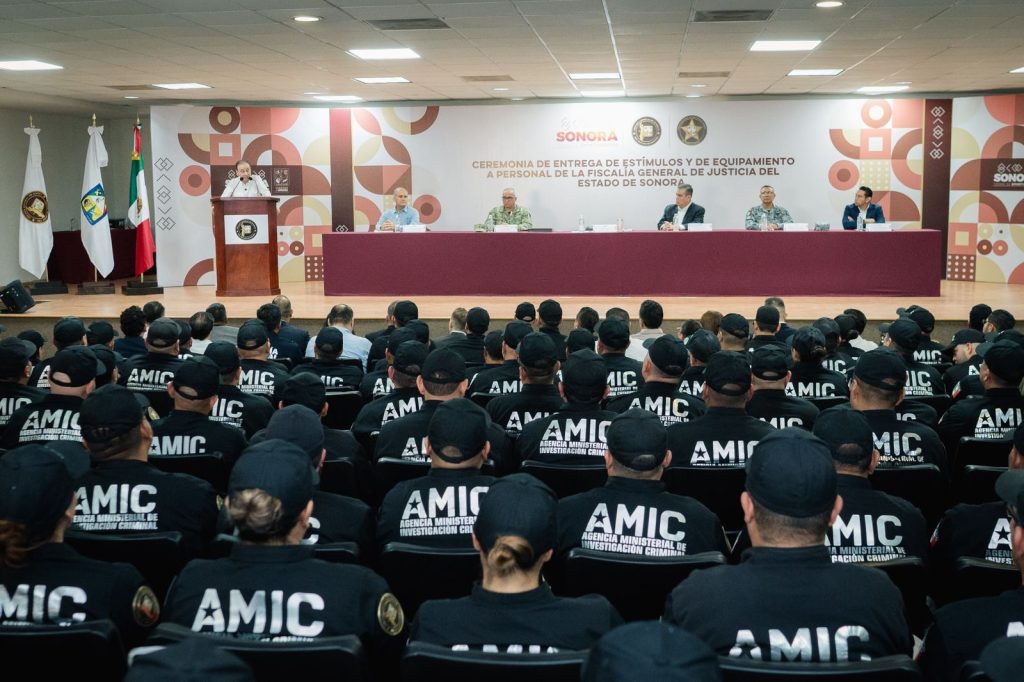 Con la entrega de estímulos económicos a personal de la Fiscalía General de Justicia del Estado (FGJE), reconocimientos, vehículos, uniformes, armamento, y equipo táctico que suman una inversión total de 65 millones de pesos, el gobernador Alfonso Durazo Montaño ratificó su compromiso por fortalecer a las instituciones encargadas de brindar seguridad y justicia a las y los sonorenses.
