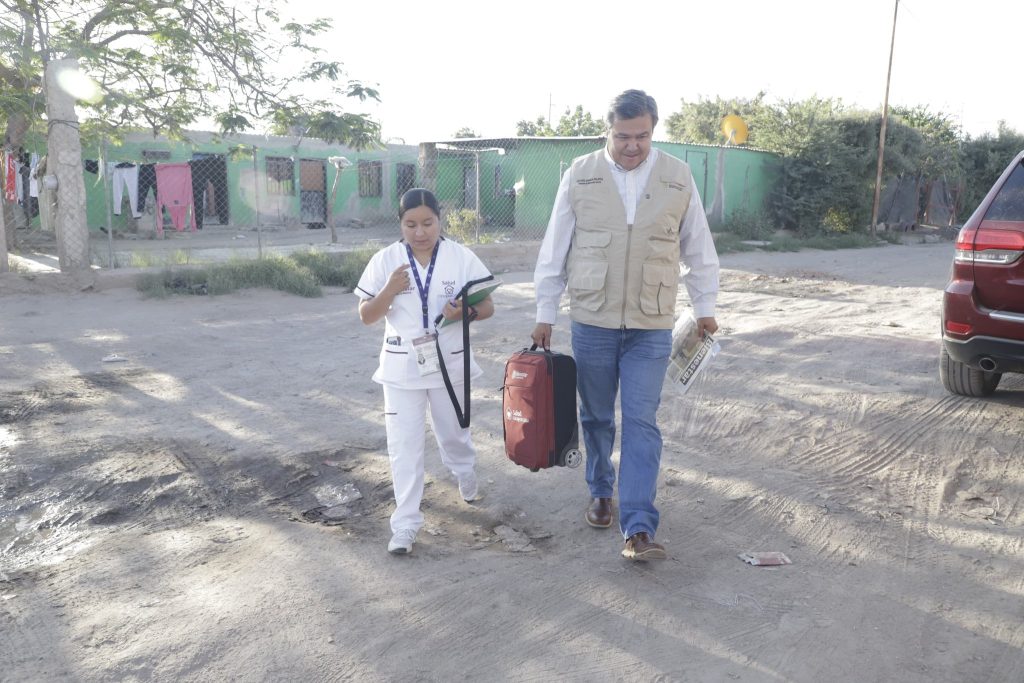 Hermosillo, Sonora. — Con la premisa de que la atención gubernamental debe construirse desde el contacto directo con la ciudadanía, el funcionario federal Octavio Almada participó en las jornadas de seguimiento del programa Salud Casa por Casa en la comunidad rural del Poblado Miguel Alemán.